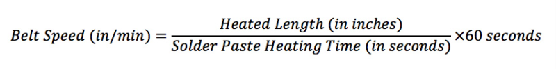 對于您正在考慮的每個烤箱,將加熱長度(以英寸為單位)除以建議的總加熱時間(以秒為單位)。 然后乘以60秒以獲得皮帶速度(英寸/分鐘),您需要實現(xiàn)該輪廓: